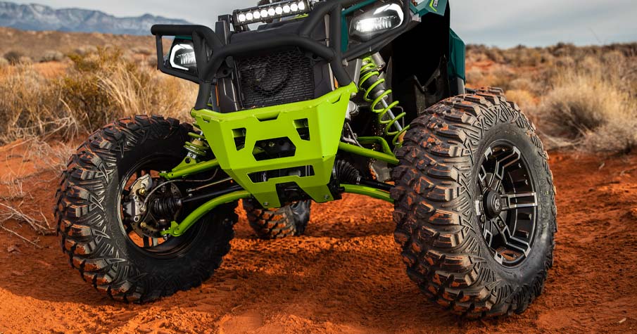 - Recorrido de la Suspensión Delantera/Trasera de 12.5"/14"